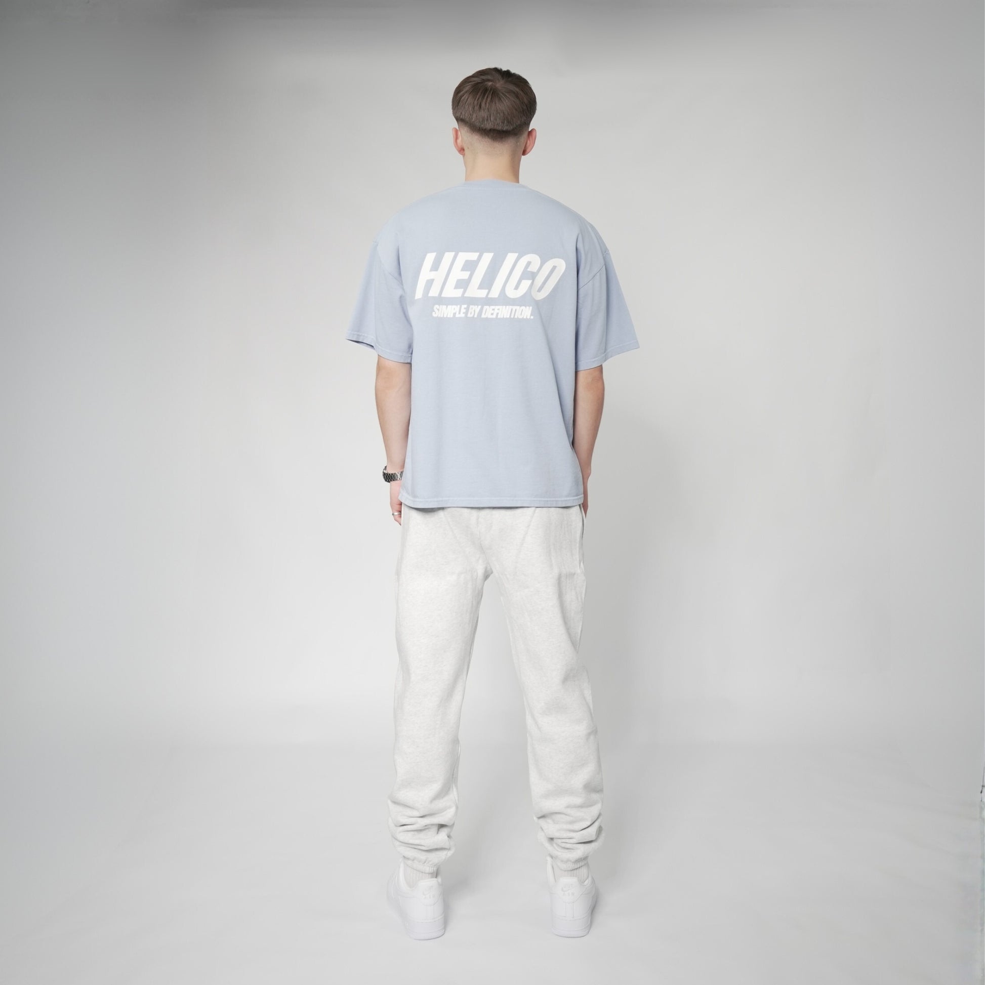 Introducing the Definition Collection T-Shirt in Light Washed Blue. An oversized T-Shirt made from 100% organic cotton. This T-Shirt features a double stitched neck for premium durability and comfort. This T-Shirt is finished with our HELICO SIMPLE BY DEFINITION print to the chest and back.